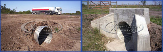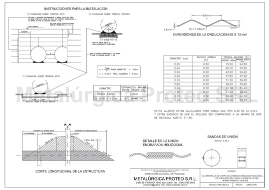 Fabricamos tubos helicoidales de chapa galvanizada ondulación 68 x 13 mms., para alcantarillas según Plano H-10209 y especificaciones de la DNV de 0.40 a 1.50 m de diámetro por 6 a 15 metros de largo acoplables mediante bandas de unión. Aptos para trafico pesado.